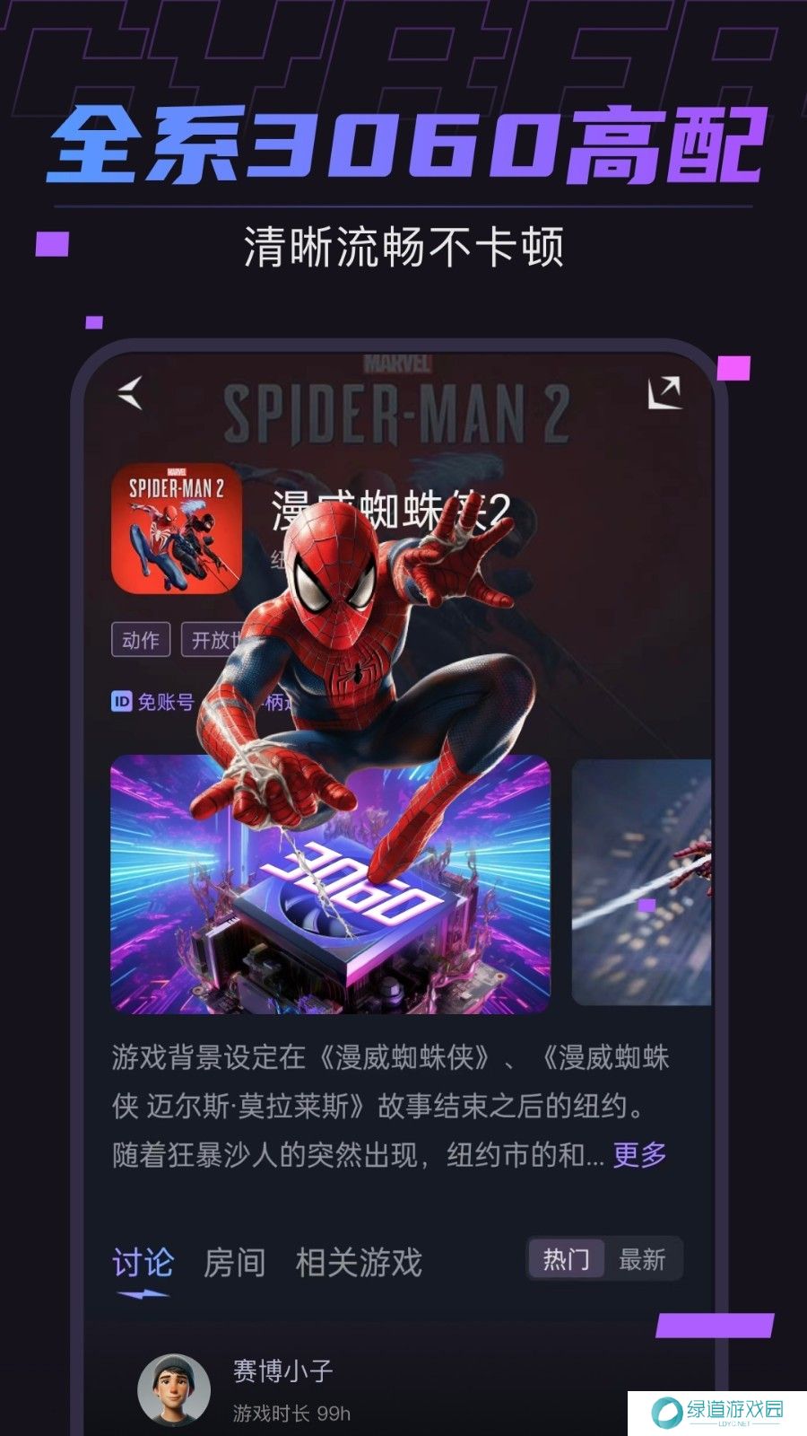 1、随时随地,手机打开马上开玩端游,黑神话悟空、漫威蜘蛛侠2等3A大作。