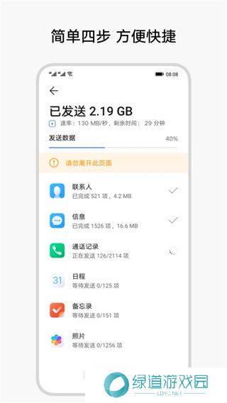 2、只需要简单的四步即可快速完成数据的传输,联系人、日程、图片全都能转存。
