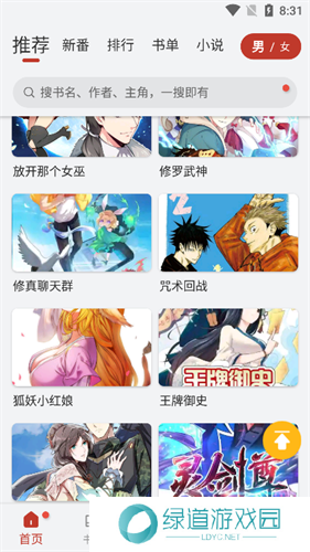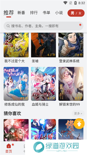 1、首页设置漫画搜索栏,按照作者、标题进行搜索,轻松找到你想看的漫画。