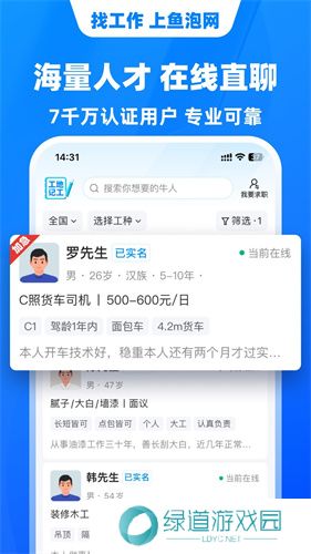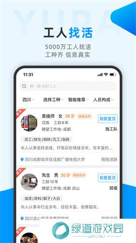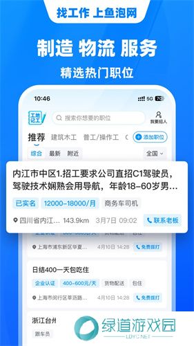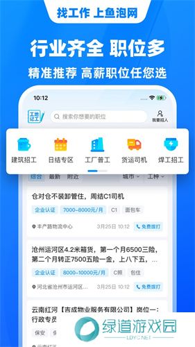 鱼泡网招工人app是一款专注于企业施工招聘工人的找工作平台,企业可在平台上发布各个岗位招聘信息,让工人能找到合适的工作解决就业难题。软件服务的行业涵盖了工地工人、装修师傅、工厂工人、货运司机、物流配送、餐饮服务等几百类工作岗位,每天都有海量招聘信息发布,其服务行业涵盖了不同的年龄范围,让你不必担心年龄问题。