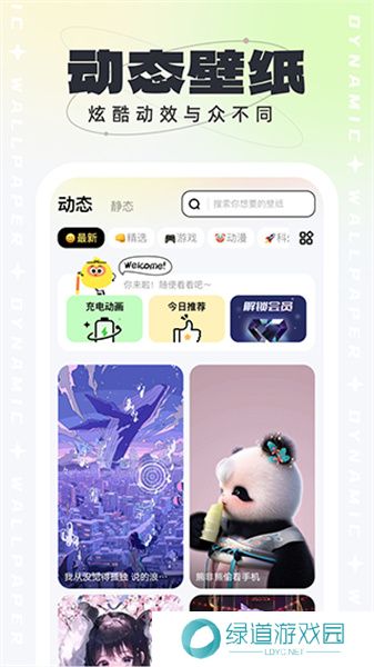 1、一键换壁纸功能,每天更换动态壁纸和高清壁纸,轻松DIY手机桌面。