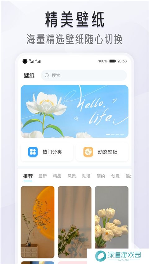 2、提供上万张精致主题壁纸,根据自己的审美壁纸美化功能,制作个性化壁纸。
