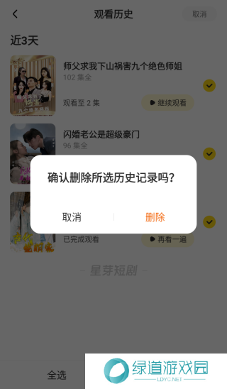 删除之后,星芽短剧“最近”中的历史记录也随之删除了。