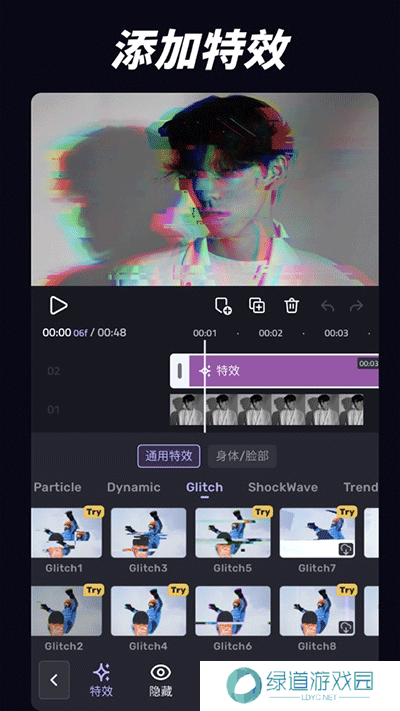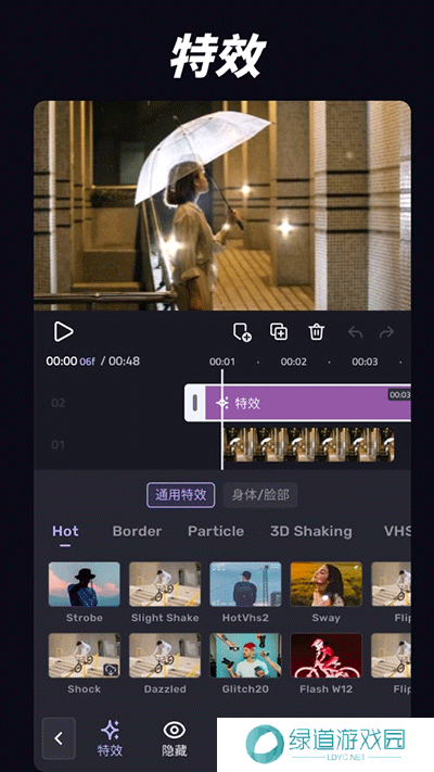 3、内置海量视频剪辑素材库,增添电影级的音效与特效,短视频的画面表现更强。