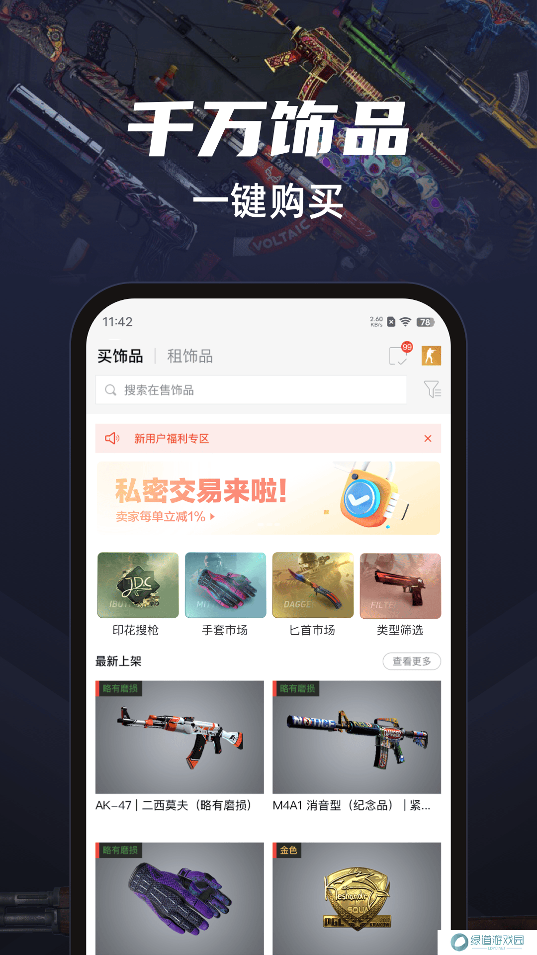 2、海量饰品,低于市面平台价格,卖家出售无需手续费,出售失败赔偿2%商品金额。
