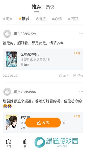 3、每一部漫画都设有评论区,大家能够在评论区发布消息,交流心得,相互分享瞎换的漫画。