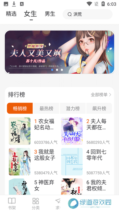 3、内置男频和女频两个版块,这样读者们找起书来也更简单,轻松搜索小说。