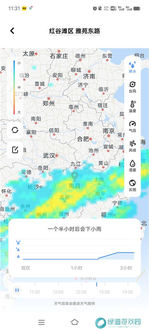 2、分钟级降水量预报,准确预测未来2小时是否会下雨及可能的降水量。