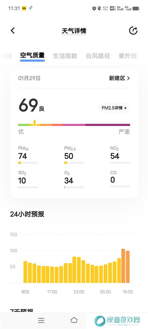 3、实时获取您当前位置的天气预报和空气质量染指数,提前带好口罩。