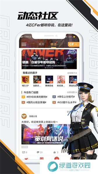 1、官方认证的竞技类游戏垂直社区APP,软件中覆盖CF端游、CF手游。