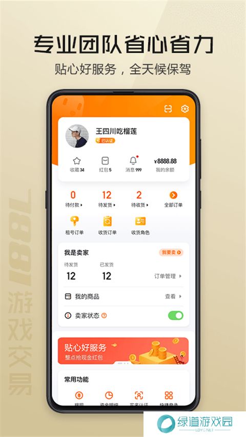 1、主打游戏装备、账号、游戏币等服务的交易平台,也方便玩家们出售账号。