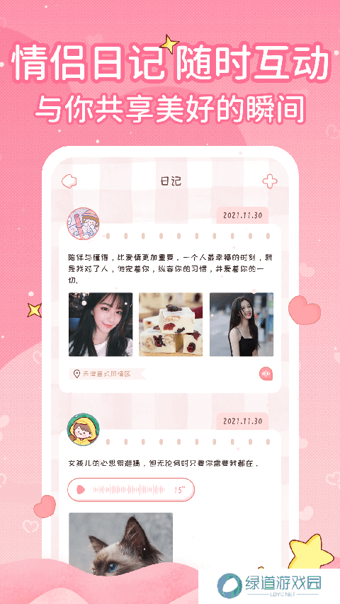 恋爱日记手机版可以让用户轻松记录自己生活的点滴,还能让用户与他人分享自己的心情和感受,创造出独一无二的日记体验。无论是喜欢文字记录还是倾向于多媒体创作的用户,它都能满足情侣们在该平台当中对于日记的记录需求。