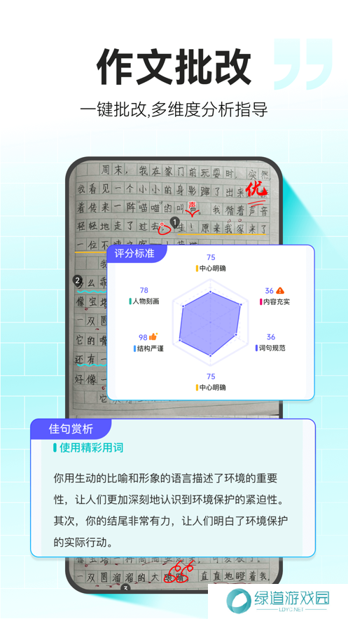 小猿作文批改是一款可以帮助家长、老师们批改作文的软件,拍照上传孩子书写的作文,借助AI大模型技术精确识别作文中出现的语法、字词、描述错误,写评语、纠错误都可以轻松解决,为老师们减负提效,也能帮助中小学生解决写不出作文的难题。