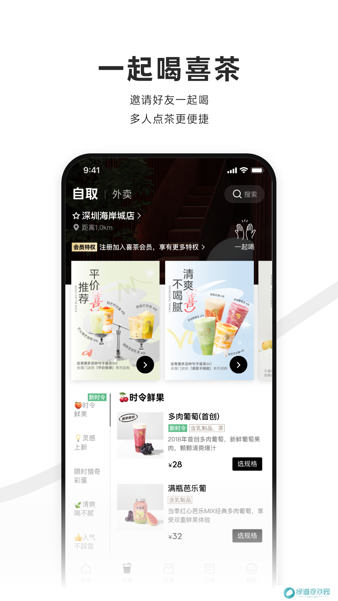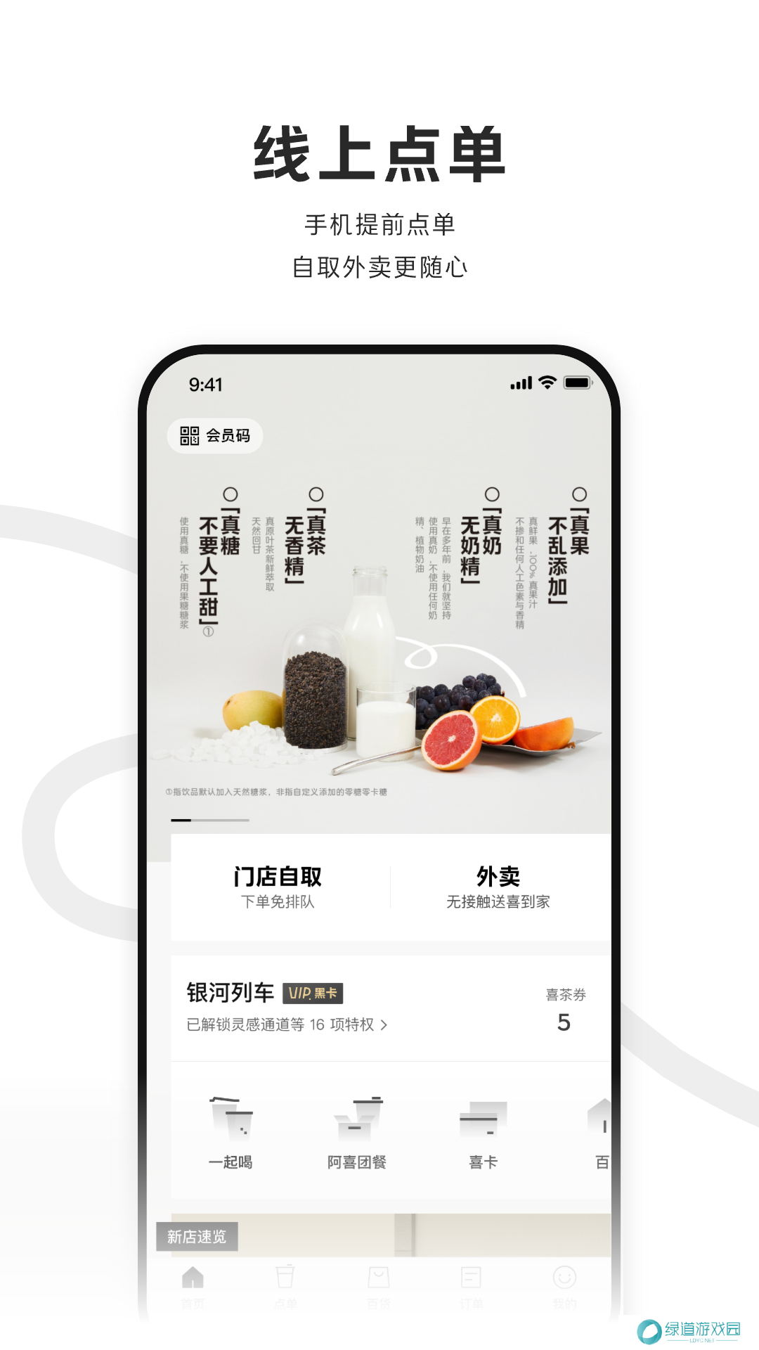 喜茶Go是喜茶旗下的外卖订购软件,软件内提供了海量的茶品信息,用户可以去使用线上的点单功能,能够轻松的进行外卖服务,也可以进行到门店内自取,可以根据自己的需求进行选择,软件内还会不定时的发布一些实时的活动,用户可以去进行参加,能够获得更多的福利,用户能够用更加优惠的价格进行购物,能够满足消费者们的各种奶茶订购需求。