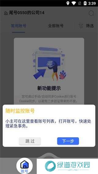 2、点击“账号”,可查看账号列表;
