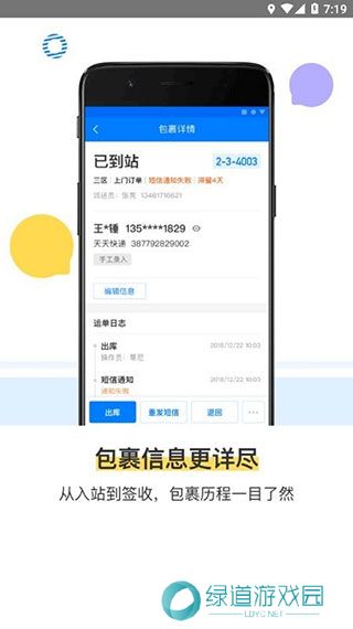 驿站掌柜安卓版作为菜鸟旗下的app,支持与菜鸟驿站集成,当快递运输到驿站时,管理者可以批量将包裹物流动态推送到客户端,提醒用户即时到驿站中取回自己的包裹,提高快递的管理效率。