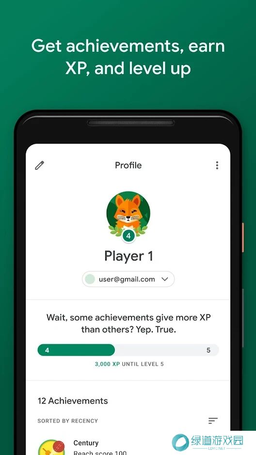 1、创建自定义玩家ID,记录你在各款GooglePlay游戏上赚取的经验值和游戏成就情况。