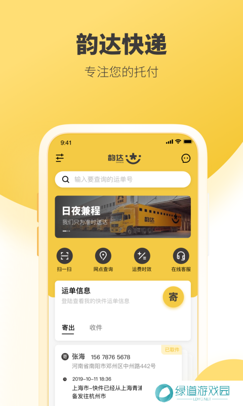 韵达快运是韵达旗下的快递配送软件,线上填写运单信息韵达快递员即刻上门取件,寄快递、收快递无需出门,发包裹更便捷。与附近的韵达快递网点同步更新,通过GPS定位直接寻找包裹所在的韵达网点,线下取件更方便。快递数据实时更新,输入快递单号或手机号就可以查看包裹的当前位置,查看包裹运输、转运过程,了解包裹现在正滞留在哪个快递中转站,向韵达客服反馈,让包裹能够顺利抵达。