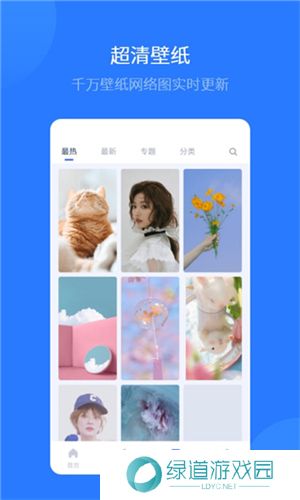 4、在“壁纸”中也是分为最新、最热、专题、美女等。