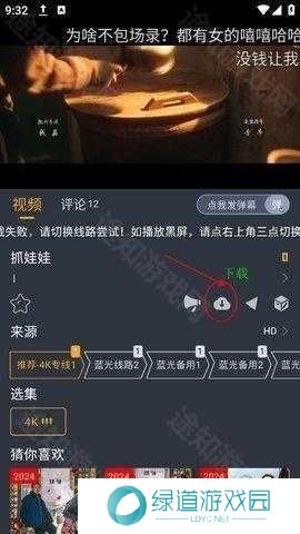 3、若遇到视频卡顿等,可以在下方的来源,切换来源,即可解决卡顿问题;