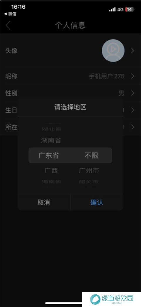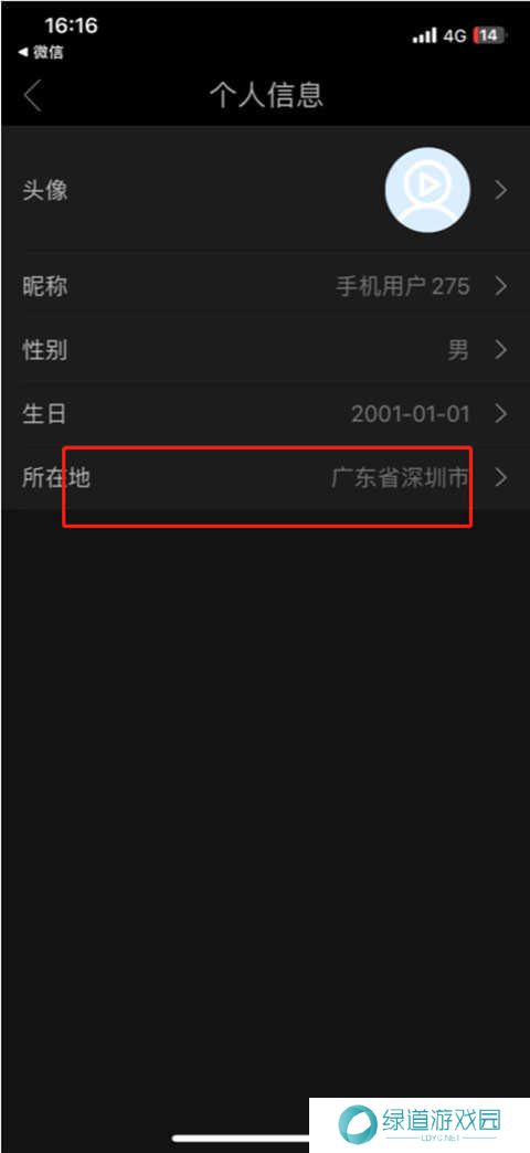 2、然后点击所在地。