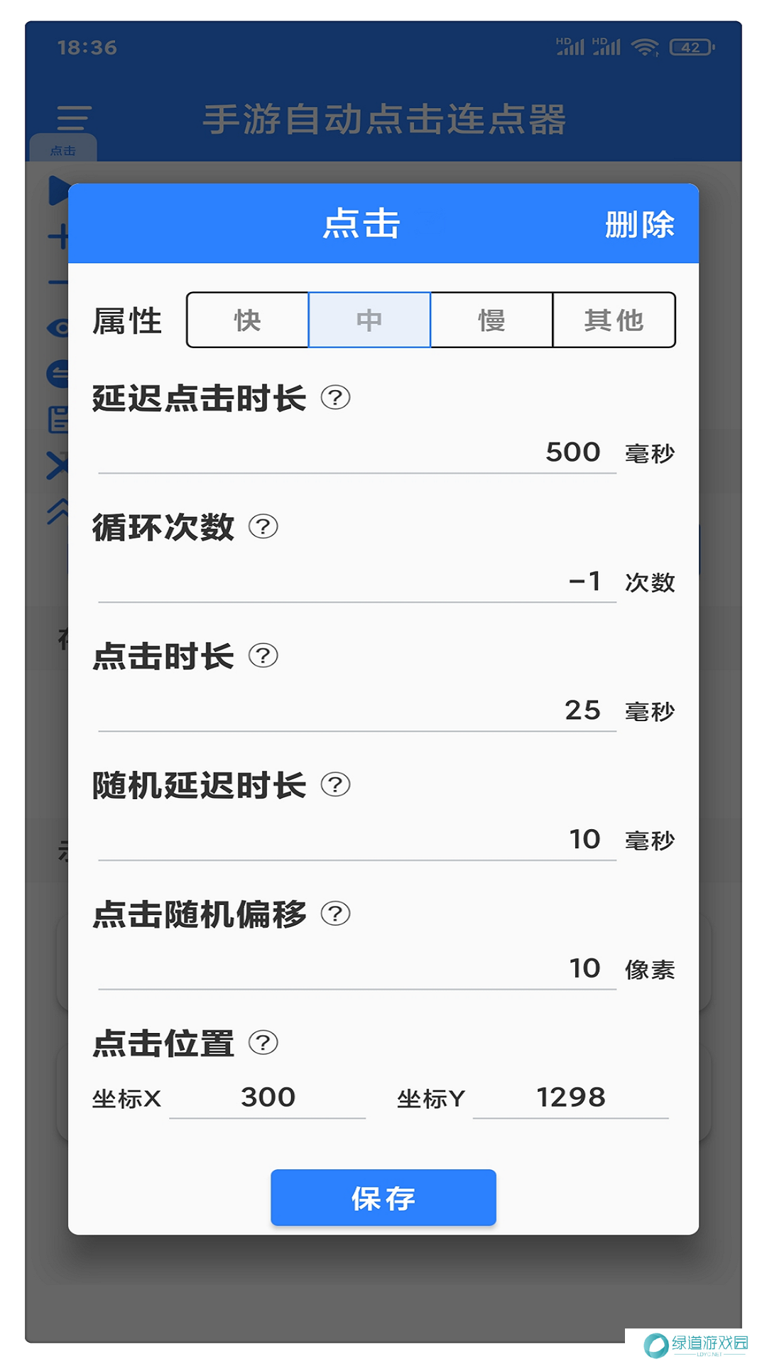 2、通过设置能设置全局的点击间隔,点击时长,重复次数,还有快速设置功能。