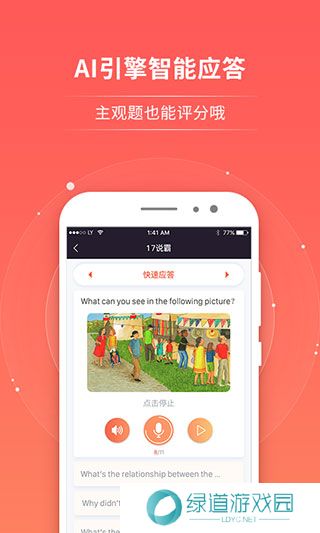 1、AI引擎智能实时应答,英语考试的主观题也能评分,为孩子提供正确参考。