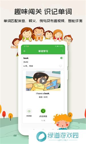 2、单词匹配发音、释义、例句及例句,单词智能语音打分,检测学生的口语水平。