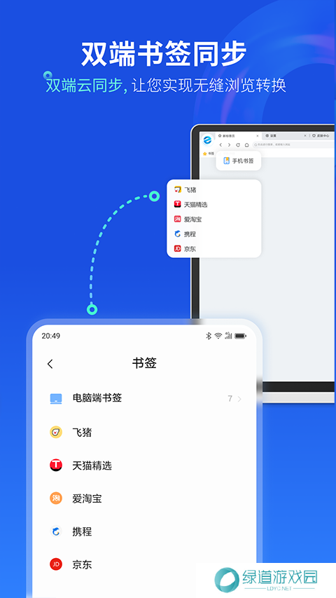 2、书签自动同步至云端,实现跨平台数据共享,随时访问自己的信息,数据随身携带。