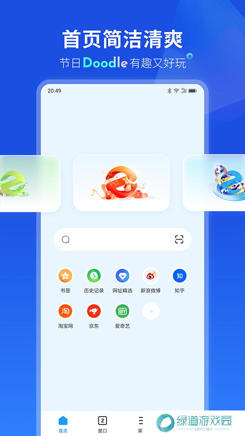 1、全新界面简约而不简单,打造清爽、简洁的上网环境,尽享纯净的网络浏览体验。