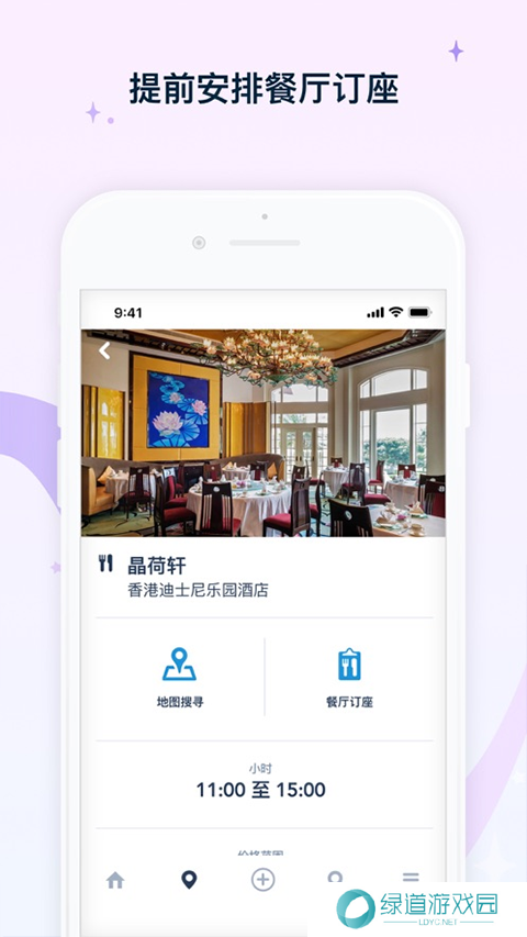 3、使用GPS定位功能,找到迪士尼乐园附近景点、餐厅、商店,玩透每个景点。