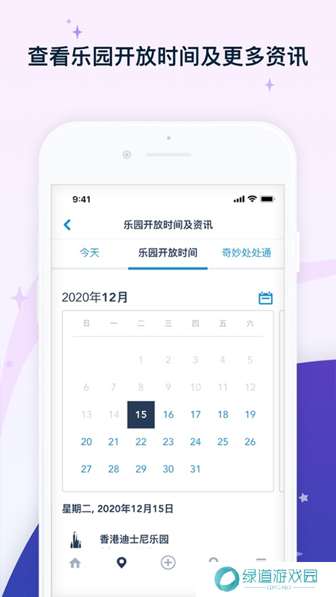 1、随时查看乐园开放时间、与迪士尼朋友表演时间、各项游乐设施的介绍资料。
