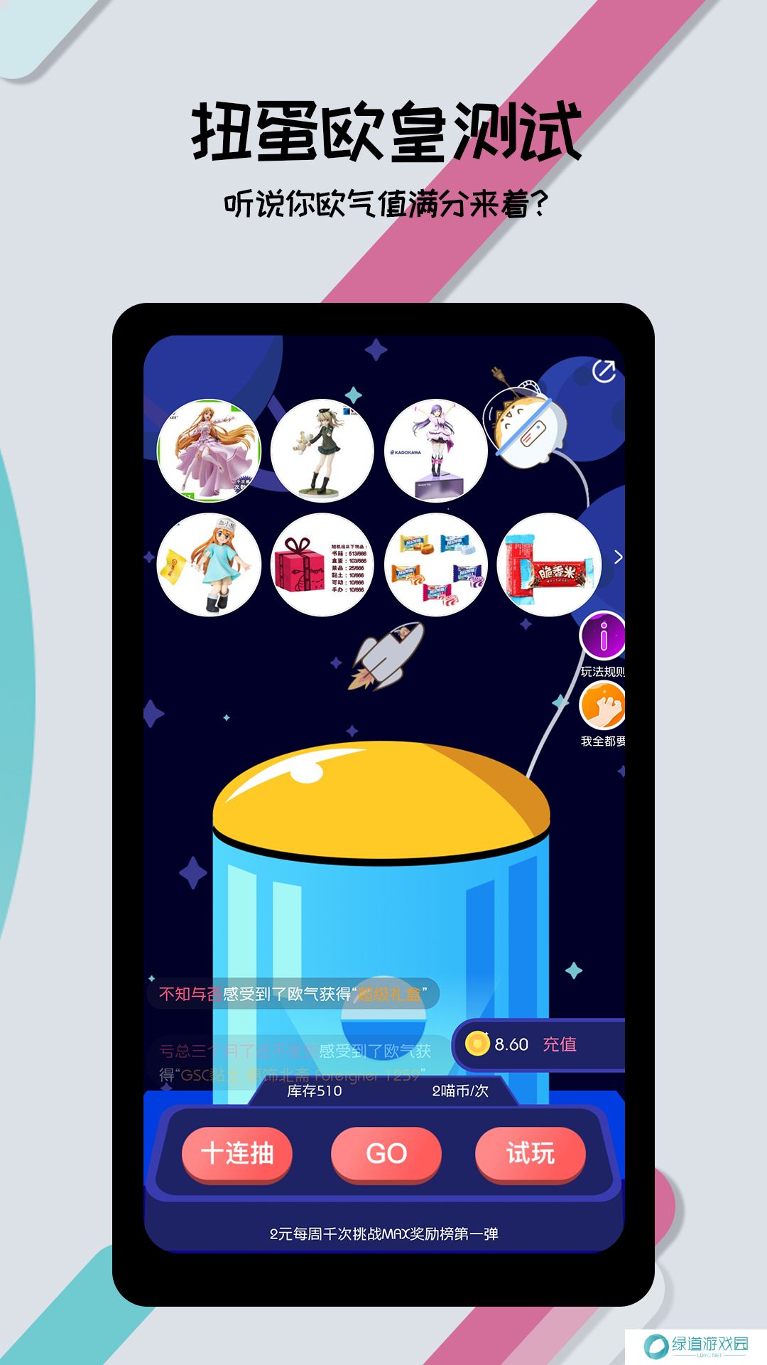 3、设置扭蛋抽奖版块,保底奖励酷炫头像挂件天或喵特主题背景使用权限。