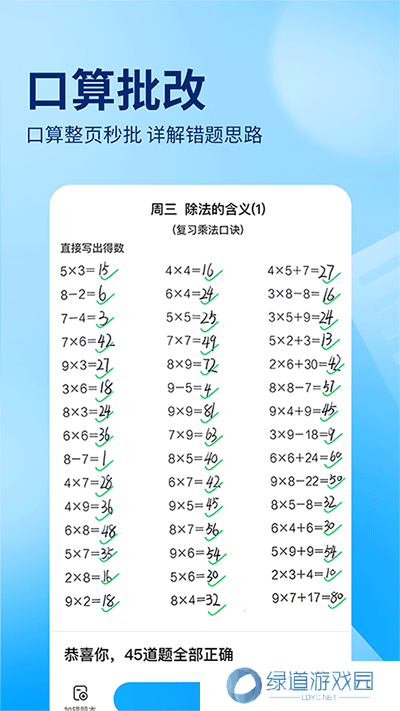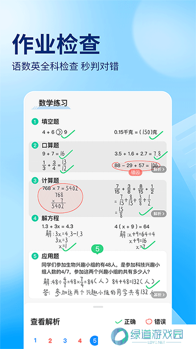 1、支持口算检查,拍照后几秒钟后检查结果,这对于小学生的家长来说是必不可少的。