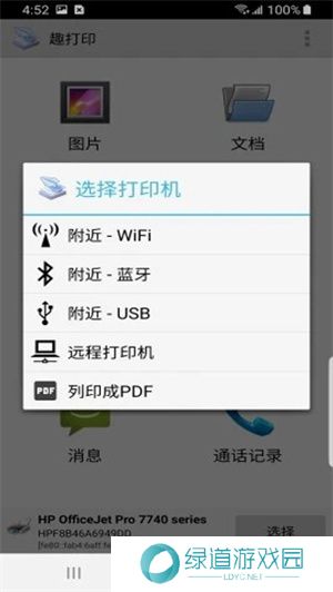 2、可通过WiFi、蓝牙、USB或互联网选择打印机。