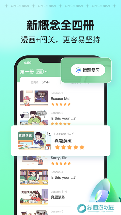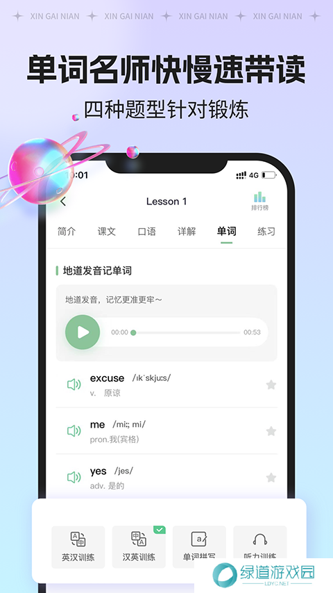 1、新概念旗下的英语学习软件,通过原创插画演绎经典课文、名师领读英语知识学习方法。