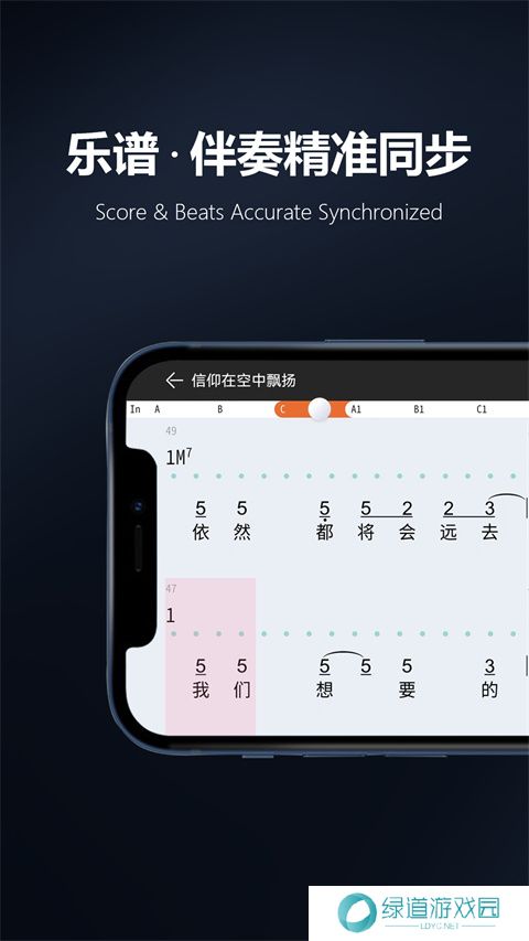 4、最后进入到演奏乐谱后可点击右侧的“乐谱下载”按钮进行下载伴奏至本地进行保存。
