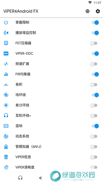 3、让手机扬声器、耳机、蓝牙耳机等设备获得音效增益,通过各项功能设置。