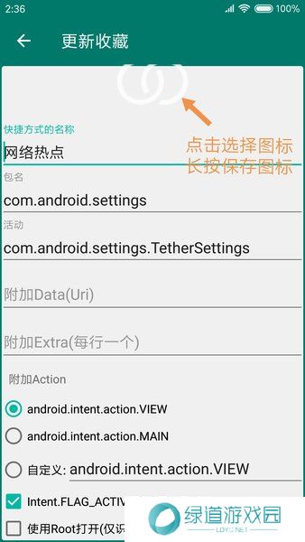 5、这里就可以设置快捷方式的名称、包名、活动等各项内容。